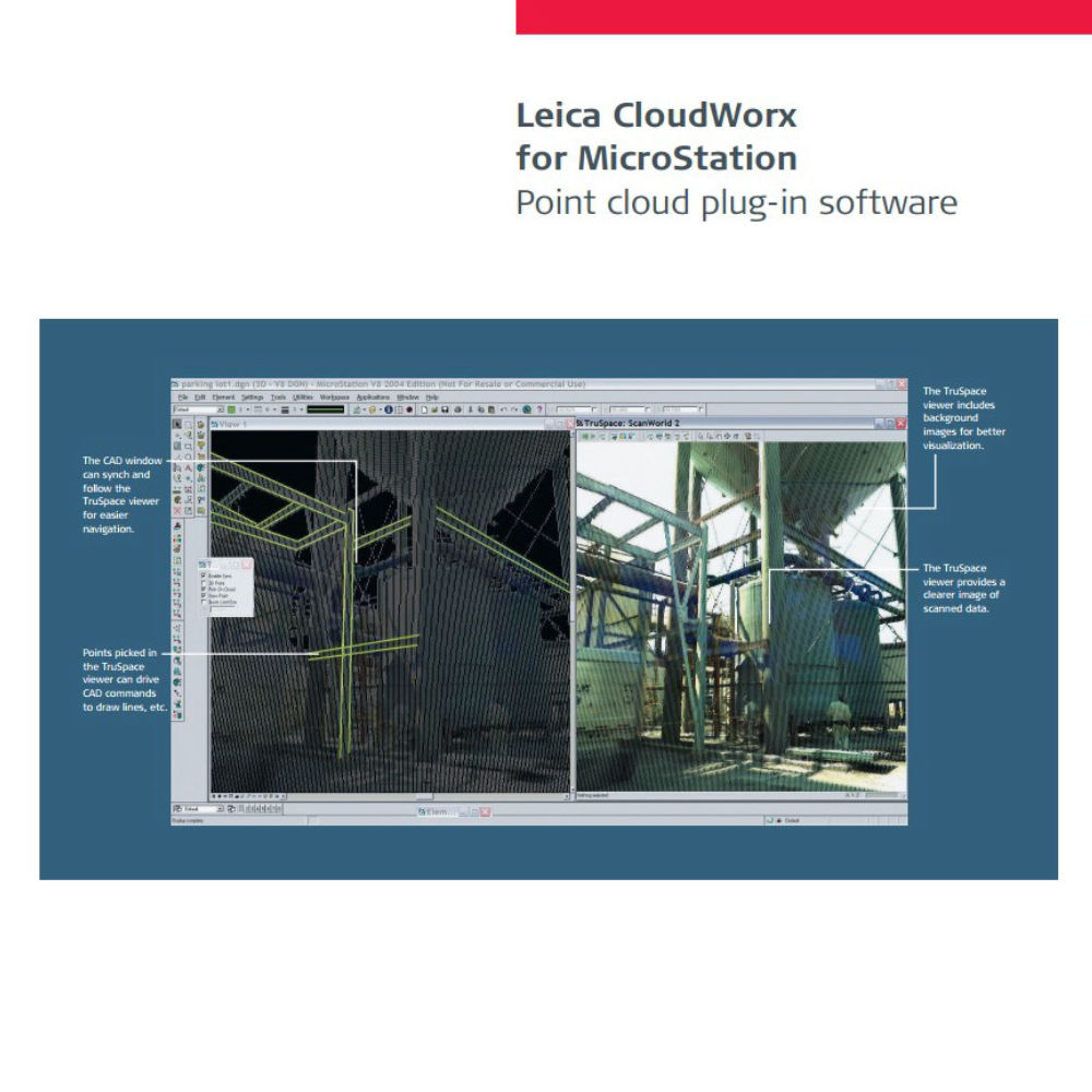 С помощью плагина Leica CloudWorx для MicroStation вы можете эффективно работать с облаками точек, полученными с любого лазерного сканера, без необходимости тратить время на сложные операции импорта и экспорта между форматами.