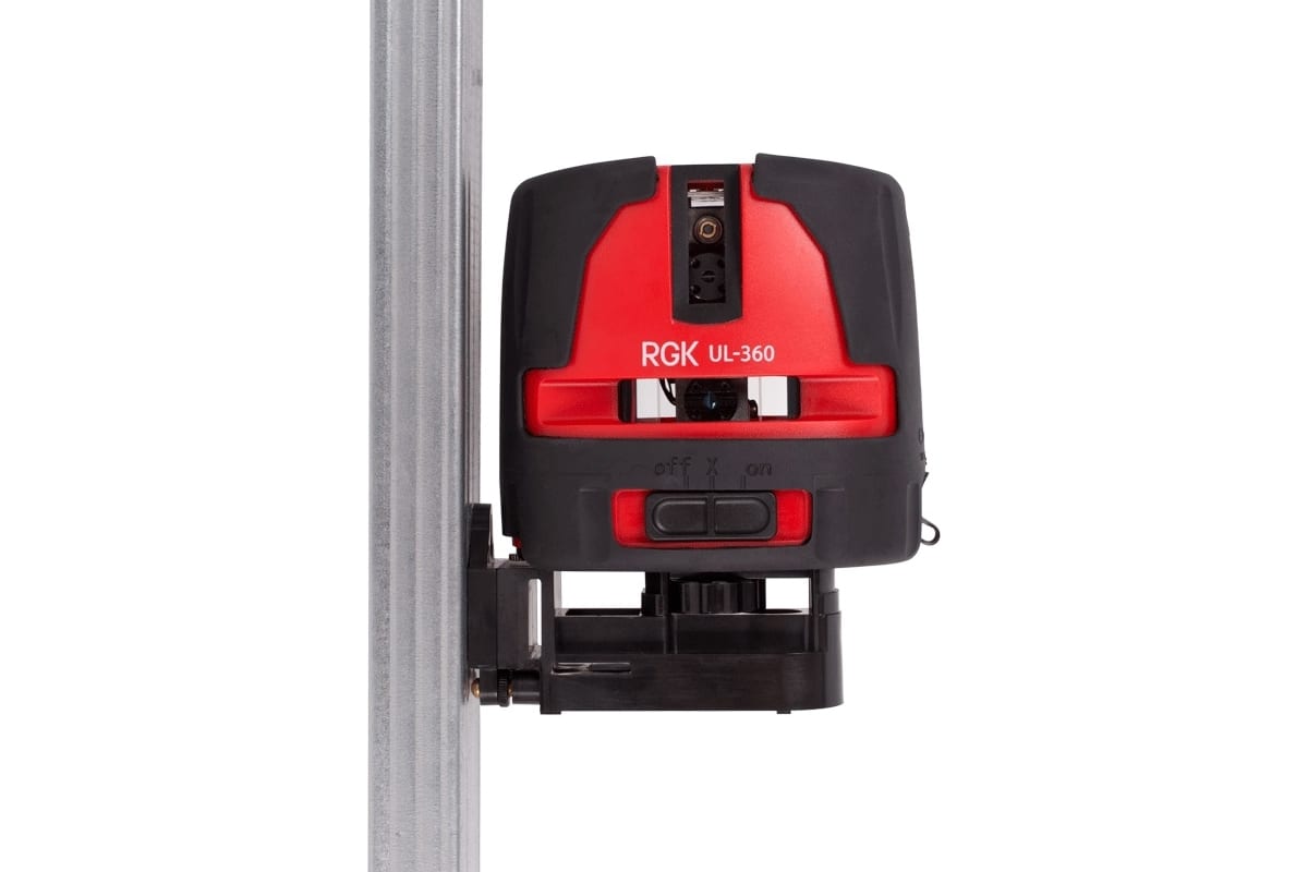Лазерный уровень RGK UL-360 — компактный и удобный построитель плоскостей, проецирующий 2 горизонтальные линии с развёрткой 360° и 2 вертикальные — с углом 240°. Линии могут отображаться как по отдельности, так и все 4 одновременно.